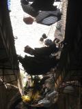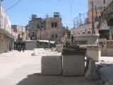 Settlers have taken over areas of Hebron's old market, making much of the old city off-limits to many locals that used to live and work there. Netting is hung above the markets to catch trash thrown down by settlers in the rapidly expanding complexes above. Soldiers stand by as settlers throw rocks at children going to school, insisting the soldiers' job is to protect the settlers, not the Palestinians. The formerly-bustling market area is now mostly abandoned.